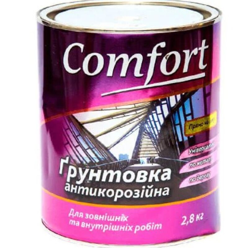 Грунт ГФ-021 Комфорт серый 2.8 кг Применение Грунтовка предназначается для окраски металлических и деревянных поверхностей под покрытие различными эмалями. Защищает от коррозии. Для наружных и внутренних работ. Свойства Обеспечивает хорошую адгезию сцеплением между окрашиваемой поверхностью и верхним лакокрасочным покрытием. Сокращает расход эмали. Обеспечивает надежную защиту от коррозии, увеличивает долговечность покрытия. Расход грунтовки на однослойное покрытие -70 - 120 г/м2 в зависимости от типа поверхности