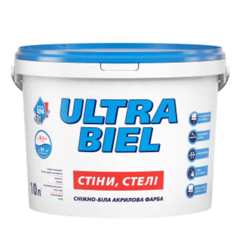 ULTRA BIEL - СНЕЖНО-БЕЛАЯ АКРИЛОВАЯ КРАСКА ДЛЯ СТЕН И ПОТОЛКОВ