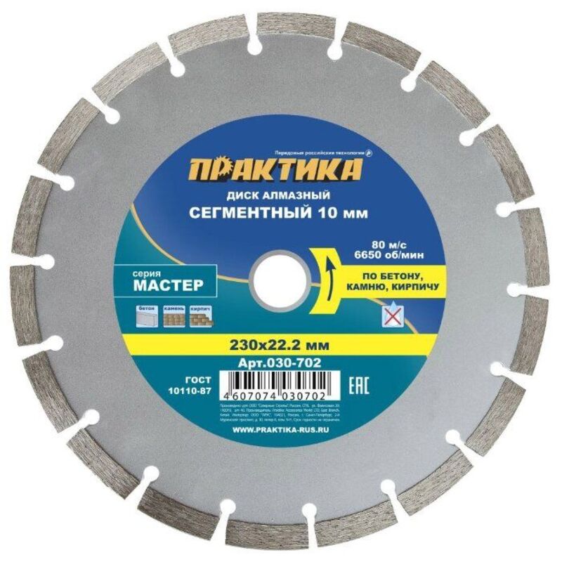 Диск алмазний по бетону відрізний сегментний, 230 х 22,2 мм