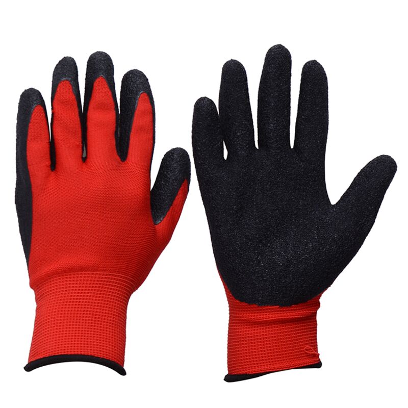 Рукавички трикотажні поліестер, червоний колір, латексне покриття (чорний), оверлок