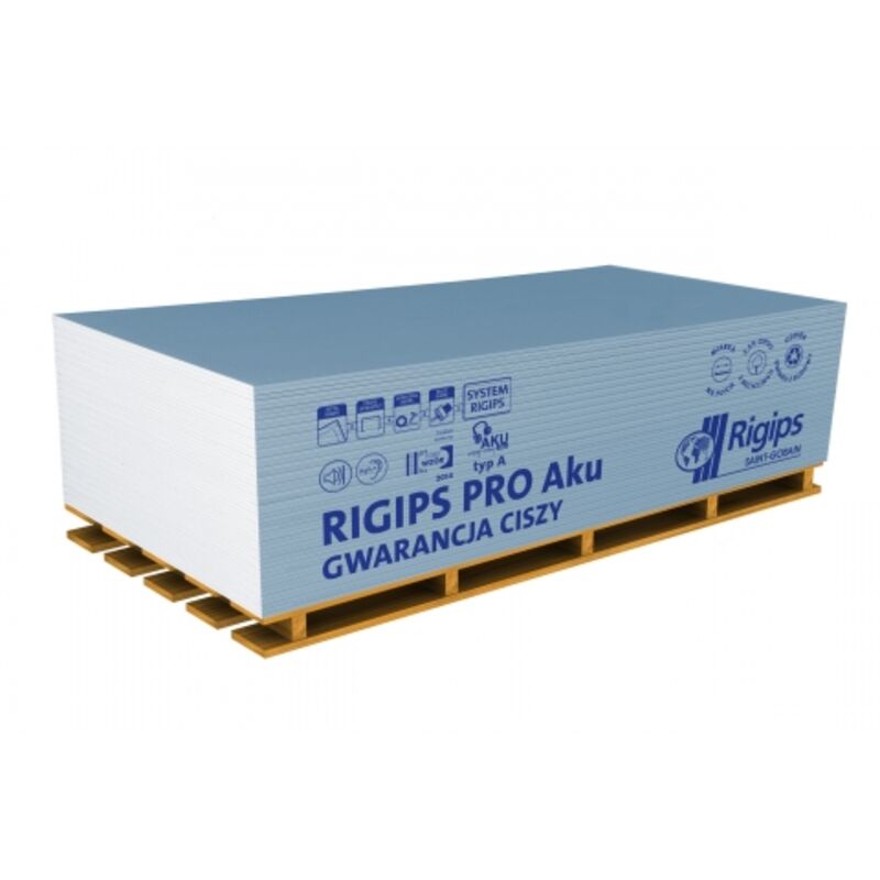 Плита гіпсокартонна RIGIPS PRO AKU для будівництва світлих стінових покриттів, перегородок, підвісних стель і мансардних забудов, включаючи акустичну ізоляцію.
